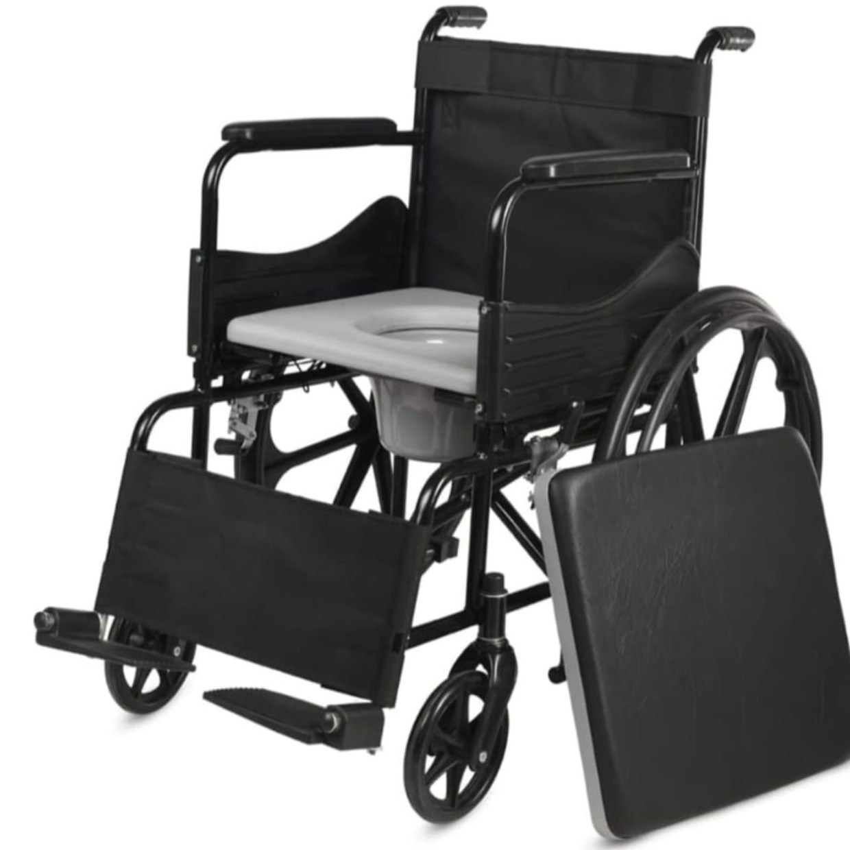 A folding wheelchair is designed for convenience, mobility, and easy storage. It is lightweight yet sturdy, making it ideal for patients and individuals who require assistance in movement both indoors and outdoors.