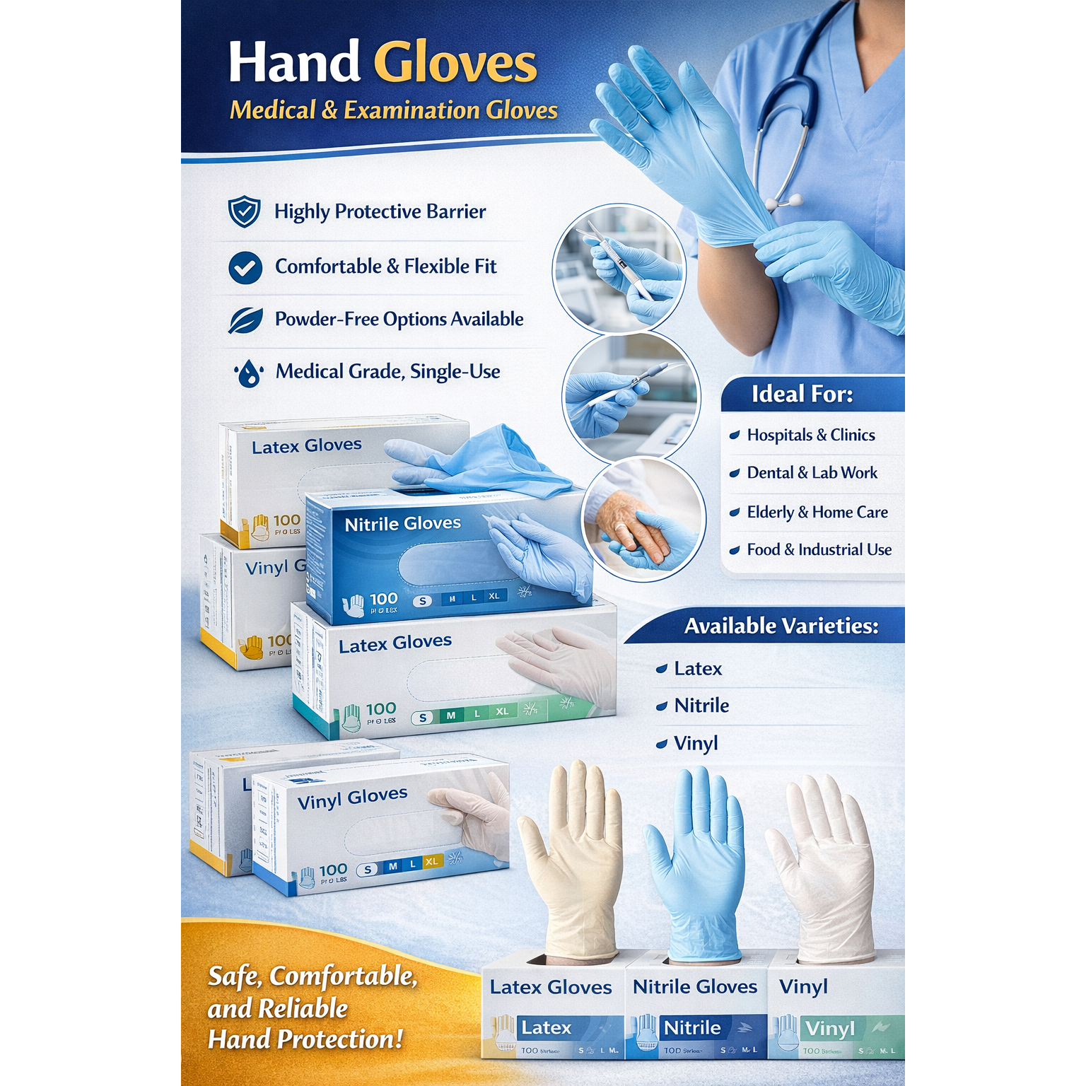 Nitrile Gloves: मजबूत, puncture-resistant and latex-free (ideal for allergy-prone users)